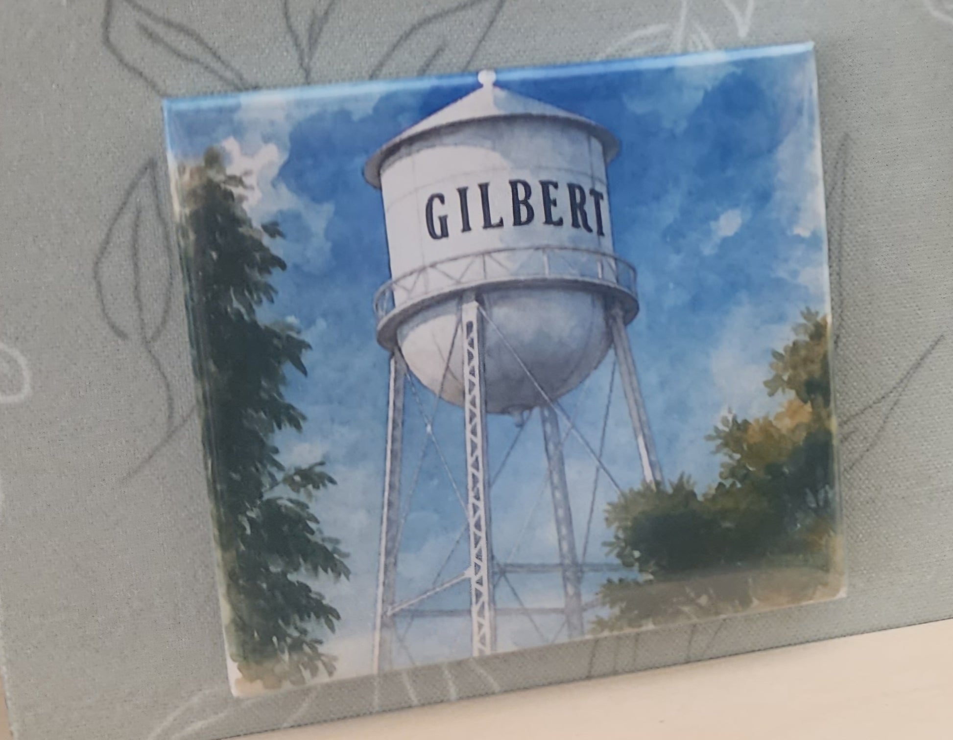 Gilbert water tower watercolor 2x2 refrigerator magnets